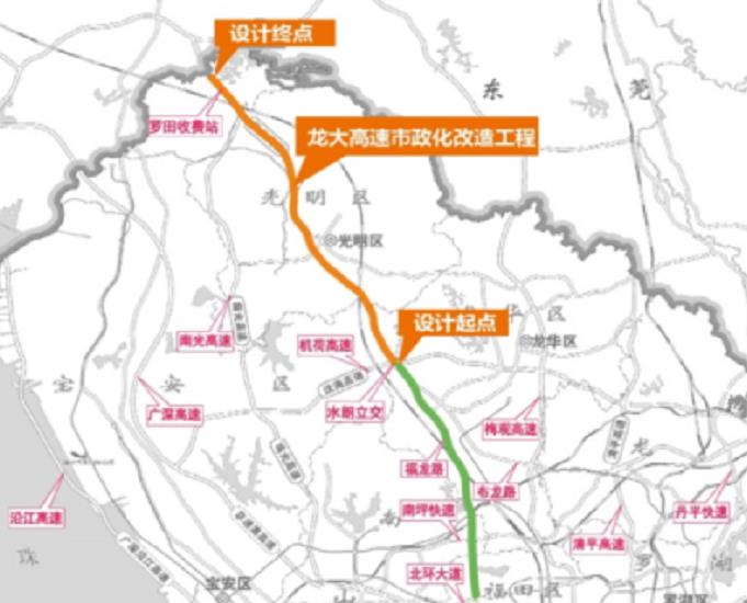 项目概况:南起机荷高速(水朗立交),北至深莞边界(罗田收费站),全长约21公里,改造为城市快速路,主路双向8车道,并增加辅路,总投资约130亿元。 进展及计划:正在开展方案设计,力争今年底开工建设, 预计2026年12月建成通车