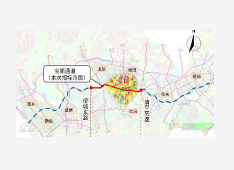 项目概况:起于滨江大道,终于南坪三期,全长约53公里,按照城市快速路标准建设。近期实施范围起于侨城东路,东至龙景立交,全长10公里,其中隧道段长2.8公里,桥梁段长6公里,主线双向6~8车道,总投资61亿元。